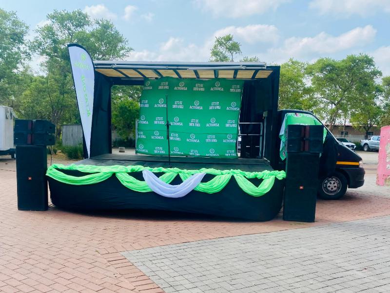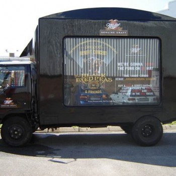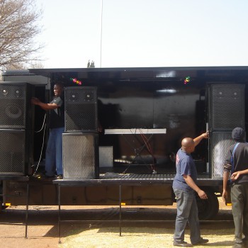 A reliable truck, ample space for display and branding, 15kw sound system with full sound capacity of delivering high quality sound for up to an event for 5000 people. we also offer add on sound for larger events.