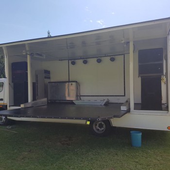 Rig comes fully equipped, sound, lighting special effects,  on board 7kva generator and backup generator, driver, operator and sound technician